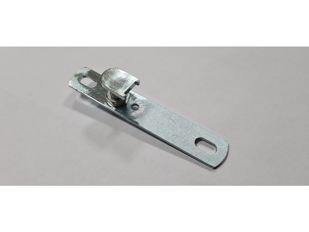 Plechové vodítko křídel dveří, používané u autobusů Karosa řady 700. Díl sloužící k zajištění křídla dveří do pneumatického zámku po správném uchycení a nastavení. Skládá se z plochého profilu s otvory a závitem s nastavitelnou zarážkou. Otvor v profilu slouží k dodatečnému osazení hřídelkou s pružinou a "tlačítkem" pro odjištění dveřního křídla zvenku. Určeno pro řadu 700, pro řadu 900 byl určen jiný tvar vodítek. Rozteč otvorů pro uchycení do originálních otvorů v dveřním křídle je cca 10,5cm. Číslo dílu 442976701301, originální výroba.