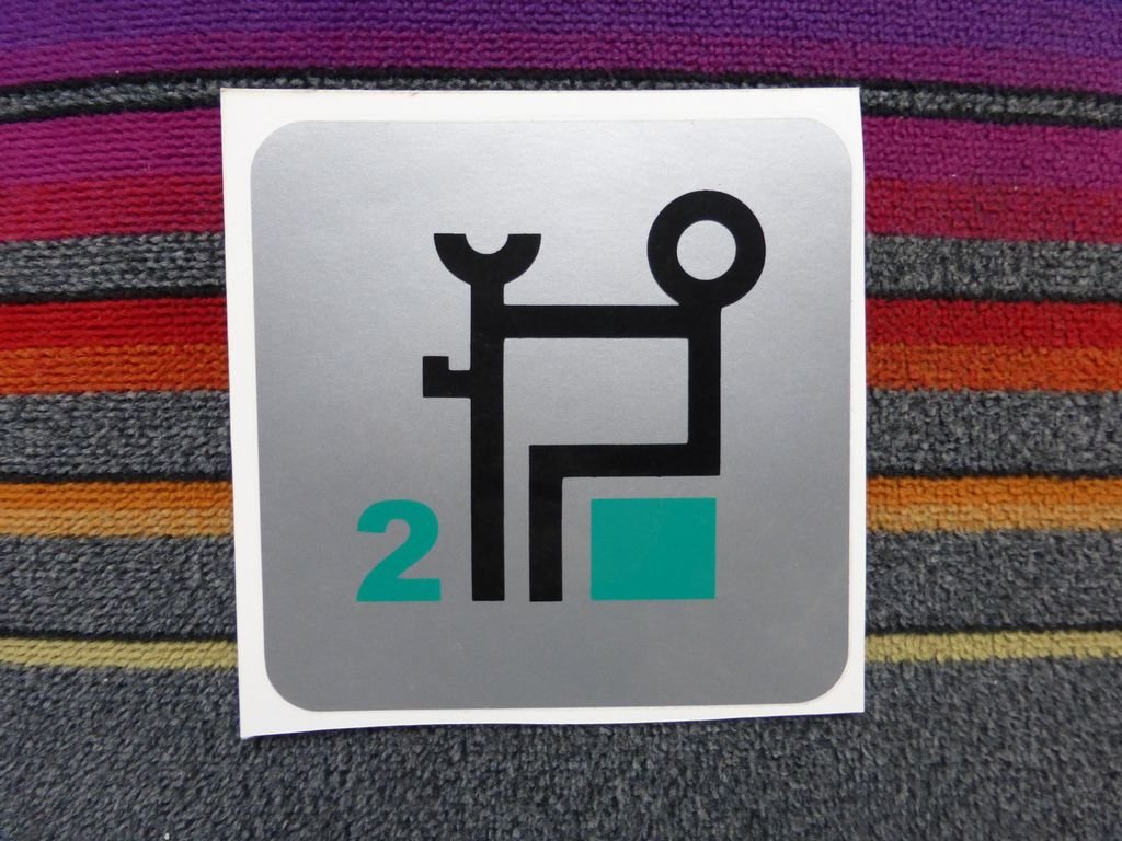 Klasický čtvercový nalepovací piktogram v hliníkovém vzhledu používaný v autobusech Karosa všech řad, ale také v dalších prostředcích hromadné přepravy osob. Větší provedení v rozměrech 10x10cm, originální provedení v hliníkovém vzhledu. Symbol vyhrazené místo pro osoby se sníženou schopností orientace a pohybu.